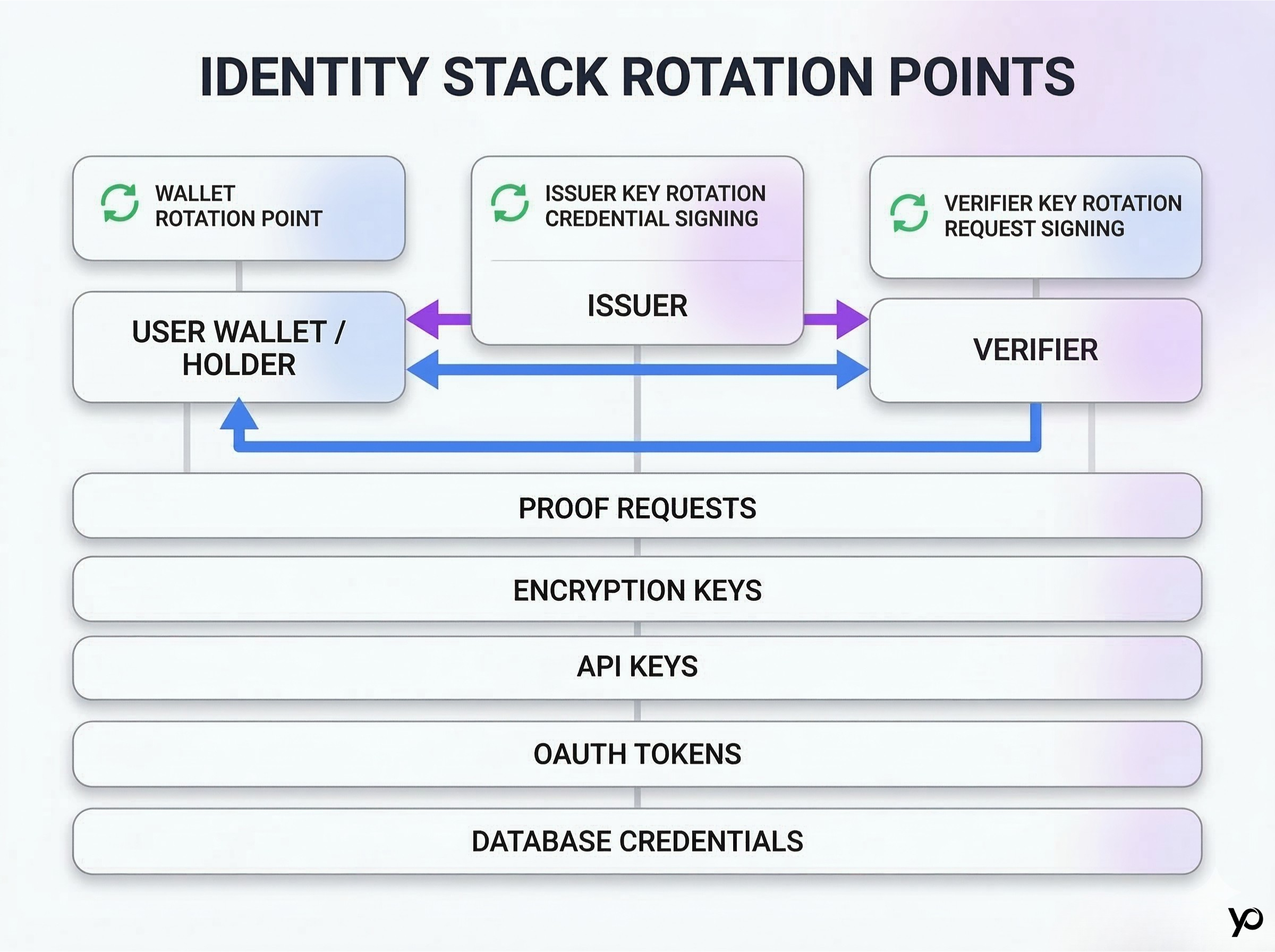 If a key rotation event breaks identity continuity or verifier trust, the deployment becomes dangerously brittle. The goal is to survive transitions without forcing unnecessary re-KYC or causing availability failures.